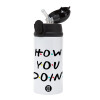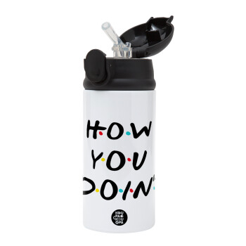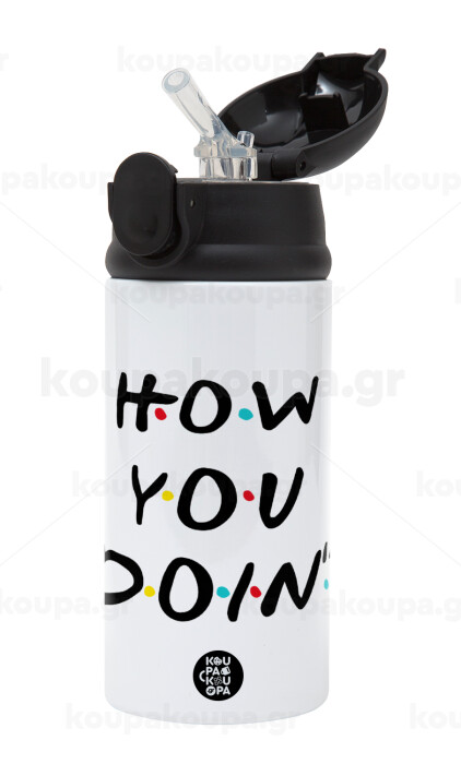 Friends How You Doin'?, Παιδικό παγούρι θερμό, ανοξείδωτο, με καλαμάκι ασφαλείας, Μαύρο (360ml) BPA-FREE