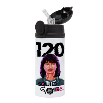 Squid game 120 Cho Hyun-ju, Παιδικό παγούρι θερμό, ανοξείδωτο, με καλαμάκι ασφαλείας, Μαύρο (360ml) BPA-FREE