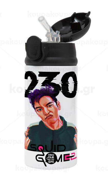 Squid game 2, Thanos 230, Παιδικό παγούρι θερμό, ανοξείδωτο, με καλαμάκι ασφαλείας, Μαύρο (360ml) BPA-FREE