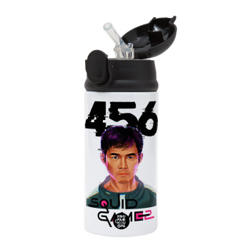 Squid game 456 Gi-Hun, Παιδικό παγούρι θερμό, ανοξείδωτο, με καλαμάκι ασφαλείας, Μαύρο (360ml) BPA-FREE