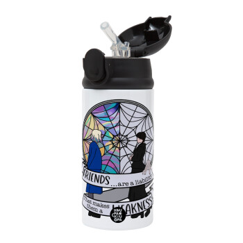 Wednesday window, Παιδικό παγούρι θερμό, ανοξείδωτο, με καλαμάκι ασφαλείας, Μαύρο (360ml) BPA-FREE