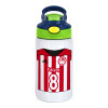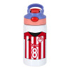 Ολυμπιακός εμφάνιση, Παιδικό παγούρι θερμό, ανοξείδωτο, με καλαμάκι ασφαλείας, Μαύρο (360ml) BPA-FREE