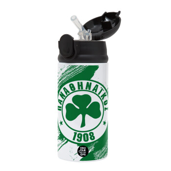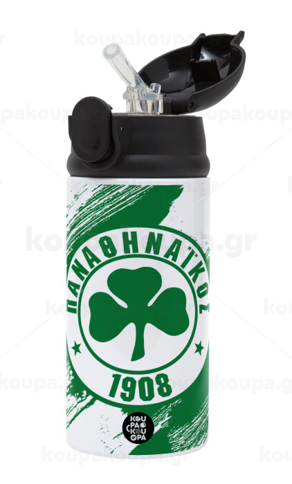 Π.Α.Ο., Παιδικό παγούρι θερμό, ανοξείδωτο, με καλαμάκι ασφαλείας, Μαύρο (360ml) BPA-FREE