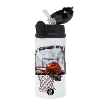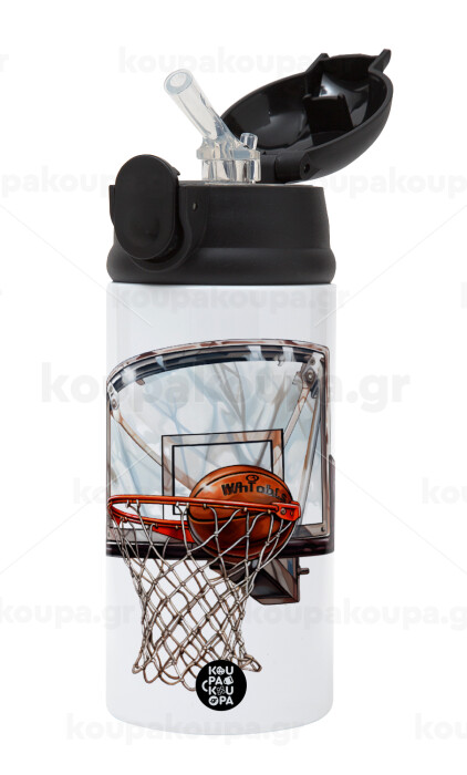 Basketball, Παιδικό παγούρι θερμό, ανοξείδωτο, με καλαμάκι ασφαλείας, Μαύρο (360ml) BPA-FREE