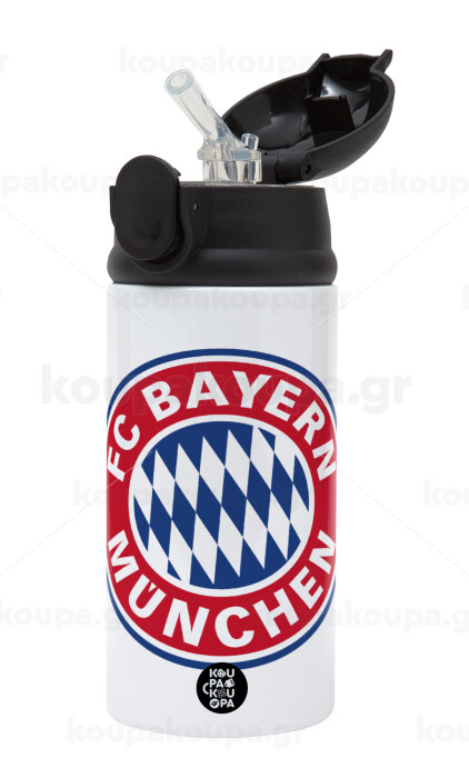 FC Bayern Munich, Παιδικό παγούρι θερμό, ανοξείδωτο, με καλαμάκι ασφαλείας, Μαύρο (360ml) BPA-FREE
