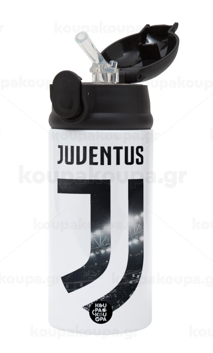FC Juventus, Παιδικό παγούρι θερμό, ανοξείδωτο, με καλαμάκι ασφαλείας, Μαύρο (360ml) BPA-FREE