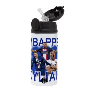 Kylian mbappe, Παιδικό παγούρι θερμό, ανοξείδωτο, με καλαμάκι ασφαλείας, Μαύρο (360ml) BPA-FREE