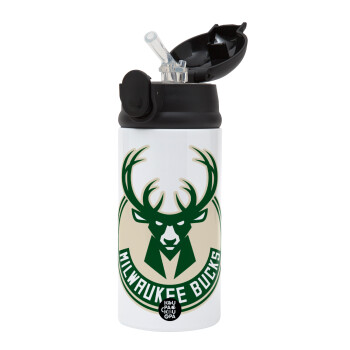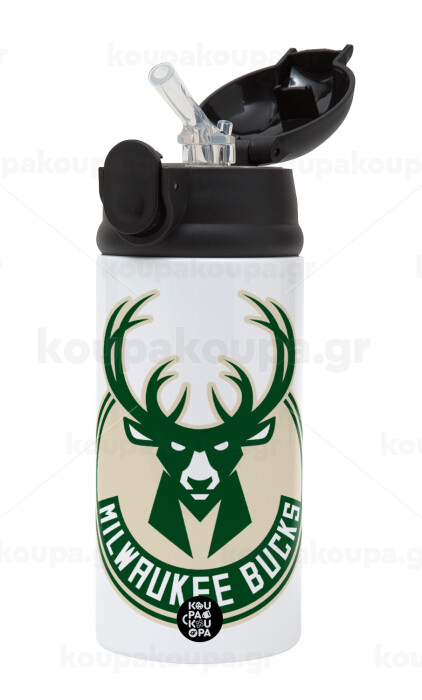 Milwaukee bucks, Παιδικό παγούρι θερμό, ανοξείδωτο, με καλαμάκι ασφαλείας, Μαύρο (360ml) BPA-FREE