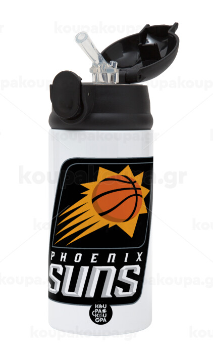 Phoenix Suns, Παιδικό παγούρι θερμό, ανοξείδωτο, με καλαμάκι ασφαλείας, Μαύρο (360ml) BPA-FREE