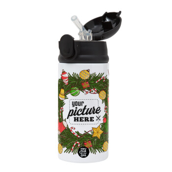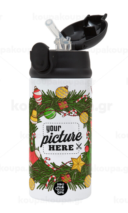 PHOTO Christmas twitch, Παιδικό παγούρι θερμό, ανοξείδωτο, με καλαμάκι ασφαλείας, Μαύρο (360ml) BPA-FREE
