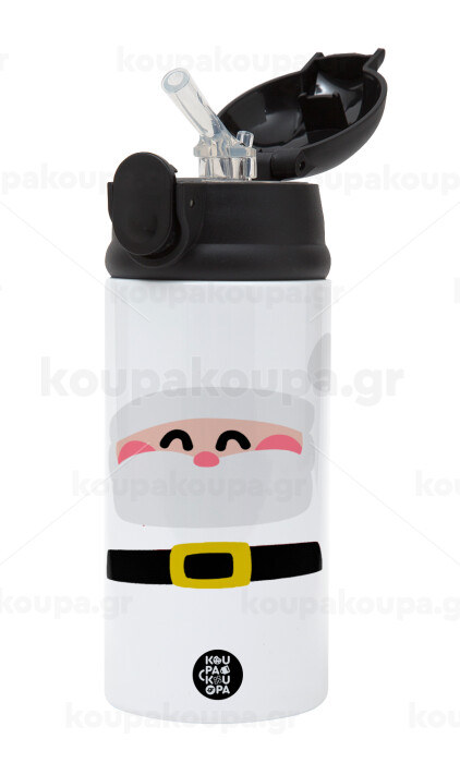 Simple Santa, Παιδικό παγούρι θερμό, ανοξείδωτο, με καλαμάκι ασφαλείας, Μαύρο (360ml) BPA-FREE