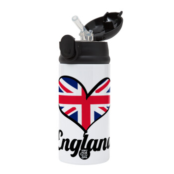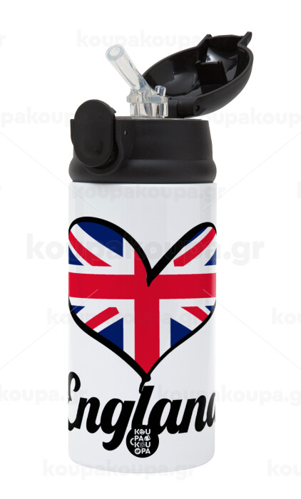 England flag, Παιδικό παγούρι θερμό, ανοξείδωτο, με καλαμάκι ασφαλείας, Μαύρο (360ml) BPA-FREE