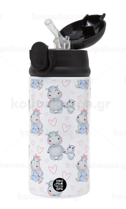Ιπποπόταμος, Παιδικό παγούρι θερμό, ανοξείδωτο, με καλαμάκι ασφαλείας, Μαύρο (360ml) BPA-FREE