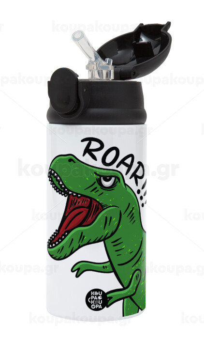Dyno roar!!!, Παιδικό παγούρι θερμό, ανοξείδωτο, με καλαμάκι ασφαλείας, Μαύρο (360ml) BPA-FREE