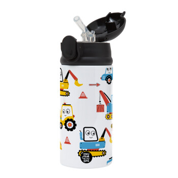 Hand drawing building truck, Παιδικό παγούρι θερμό, ανοξείδωτο, με καλαμάκι ασφαλείας, Μαύρο (360ml) BPA-FREE