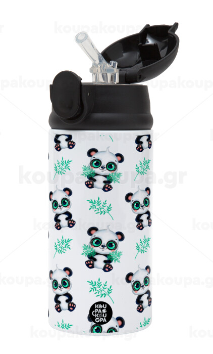 Panda, Παιδικό παγούρι θερμό, ανοξείδωτο, με καλαμάκι ασφαλείας, Μαύρο (360ml) BPA-FREE
