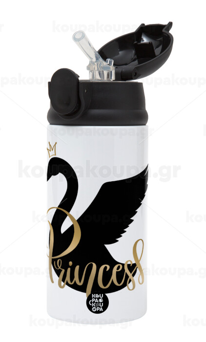 Swan Princess, Παιδικό παγούρι θερμό, ανοξείδωτο, με καλαμάκι ασφαλείας, Μαύρο (360ml) BPA-FREE