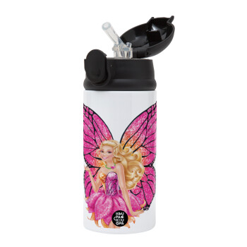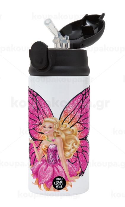 Barbie Νεράιδα, Παιδικό παγούρι θερμό, ανοξείδωτο, με καλαμάκι ασφαλείας, Μαύρο (360ml) BPA-FREE