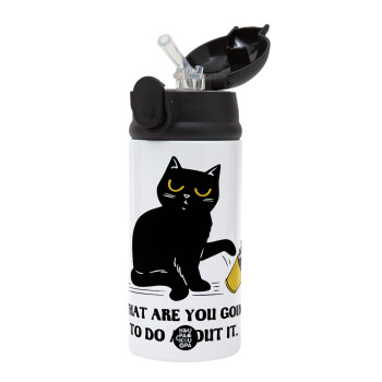CAT, what are you going to do about it!, Παιδικό παγούρι θερμό, ανοξείδωτο, με καλαμάκι ασφαλείας, Μαύρο (360ml) BPA-FREE
