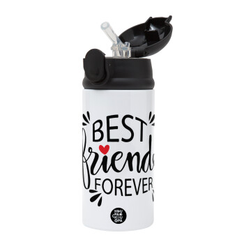 Best Friends forever, Παιδικό παγούρι θερμό, ανοξείδωτο, με καλαμάκι ασφαλείας, Μαύρο (360ml) BPA-FREE