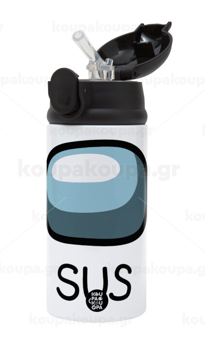 Among US SUS!!!, Παιδικό παγούρι θερμό, ανοξείδωτο, με καλαμάκι ασφαλείας, Μαύρο (360ml) BPA-FREE