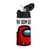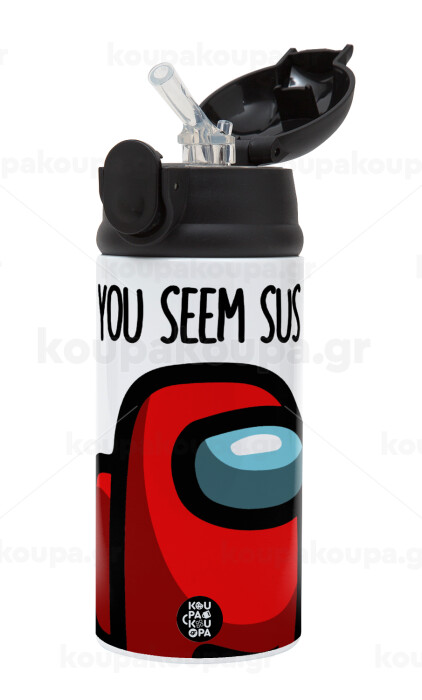 Among US, you seem sus, Παιδικό παγούρι θερμό, ανοξείδωτο, με καλαμάκι ασφαλείας, Μαύρο (360ml) BPA-FREE
