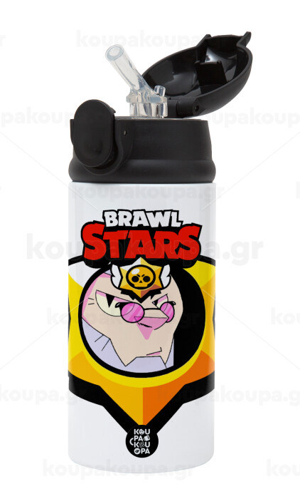 Brawl Stars Byron, Παιδικό παγούρι θερμό, ανοξείδωτο, με καλαμάκι ασφαλείας, Μαύρο (360ml) BPA-FREE
