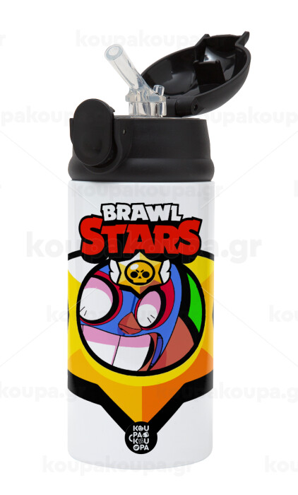 Brawl Stars El primo, Παιδικό παγούρι θερμό, ανοξείδωτο, με καλαμάκι ασφαλείας, Μαύρο (360ml) BPA-FREE