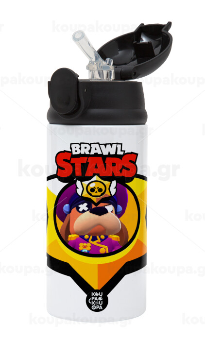 Brawl Stars Ruffs, Παιδικό παγούρι θερμό, ανοξείδωτο, με καλαμάκι ασφαλείας, Μαύρο (360ml) BPA-FREE