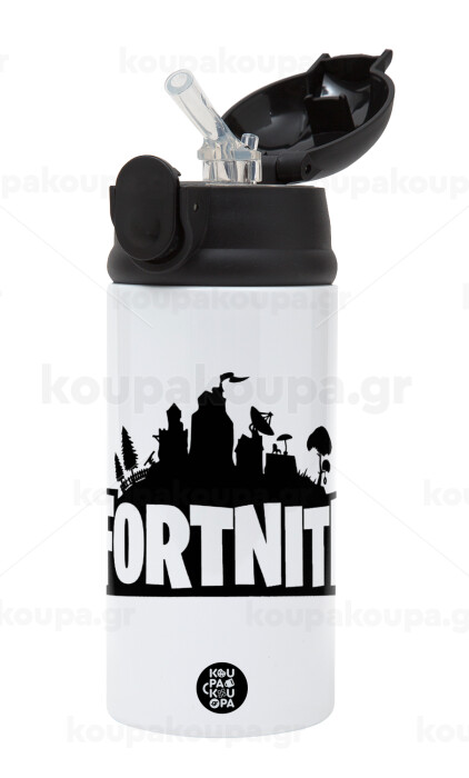 Fortnite, Παιδικό παγούρι θερμό, ανοξείδωτο, με καλαμάκι ασφαλείας, Μαύρο (360ml) BPA-FREE