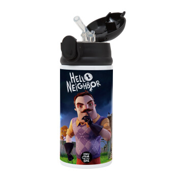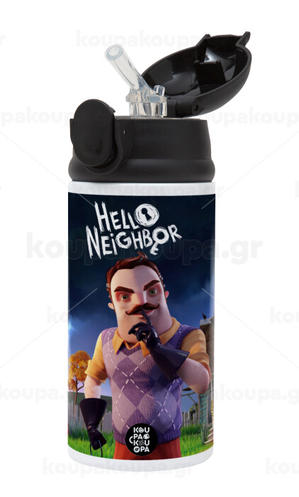 Hello Neighbor, Παιδικό παγούρι θερμό, ανοξείδωτο, με καλαμάκι ασφαλείας, Μαύρο (360ml) BPA-FREE