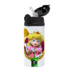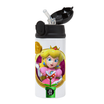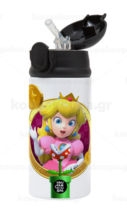 Princess Peach Toadstool, Παιδικό παγούρι θερμό, ανοξείδωτο, με καλαμάκι ασφαλείας, Μαύρο (360ml) BPA-FREE