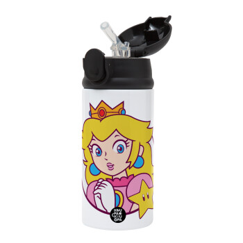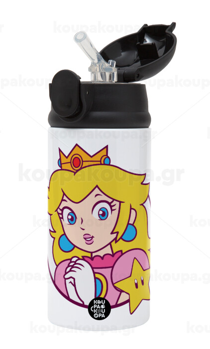 Princess Peach, Παιδικό παγούρι θερμό, ανοξείδωτο, με καλαμάκι ασφαλείας, Μαύρο (360ml) BPA-FREE