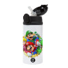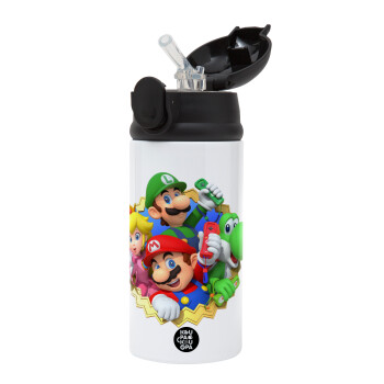 Super mario and Friends, Παιδικό παγούρι θερμό, ανοξείδωτο, με καλαμάκι ασφαλείας, Μαύρο (360ml) BPA-FREE