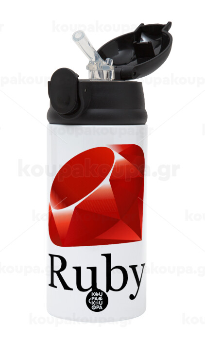 Ruby, Παιδικό παγούρι θερμό, ανοξείδωτο, με καλαμάκι ασφαλείας, Μαύρο (360ml) BPA-FREE