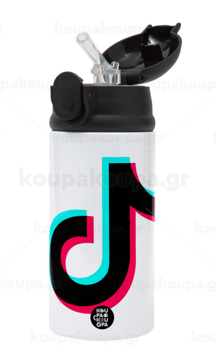 tik tok, Παιδικό παγούρι θερμό, ανοξείδωτο, με καλαμάκι ασφαλείας, Μαύρο (360ml) BPA-FREE