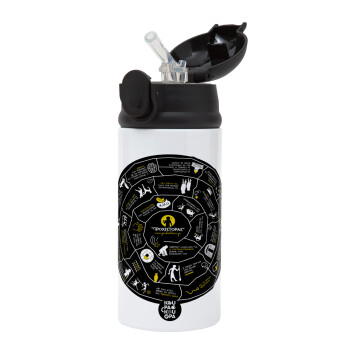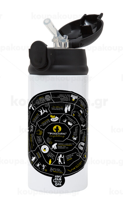Προχίστορας, Παιδικό παγούρι θερμό, ανοξείδωτο, με καλαμάκι ασφαλείας, Μαύρο (360ml) BPA-FREE