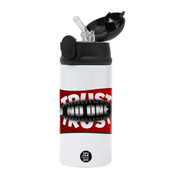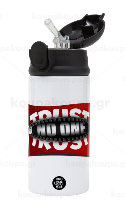 Trust no one... (zipper), Παιδικό παγούρι θερμό, ανοξείδωτο, με καλαμάκι ασφαλείας, Μαύρο (360ml) BPA-FREE