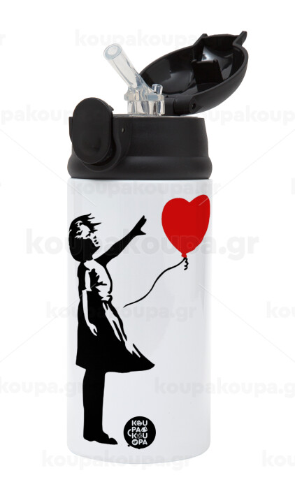 Banksy (Hope), Παιδικό παγούρι θερμό, ανοξείδωτο, με καλαμάκι ασφαλείας, Μαύρο (360ml) BPA-FREE