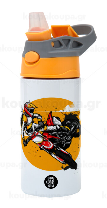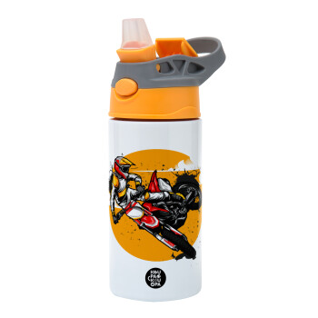 Motocross, Παιδικό παγούρι θερμό, ανοξείδωτο, με καλαμάκι ασφαλείας, Πορτοκαλί/Γκρι (360ml) BPA-FREE