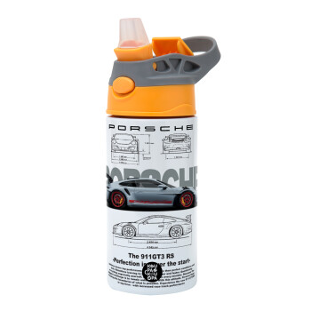 Porsche, Παιδικό παγούρι θερμό, ανοξείδωτο, με καλαμάκι ασφαλείας, Πορτοκαλί/Γκρι (360ml) BPA-FREE