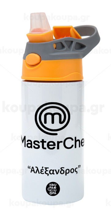 Master Chef, Παιδικό παγούρι θερμό, ανοξείδωτο, με καλαμάκι ασφαλείας, Πορτοκαλί/Γκρι (360ml) BPA-FREE