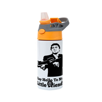 Baby Yoda mandalorian, Παιδικό παγούρι θερμό, ανοξείδωτο, με καλαμάκι ασφαλείας, Πορτοκαλί/Γκρι (360ml) BPA-FREE