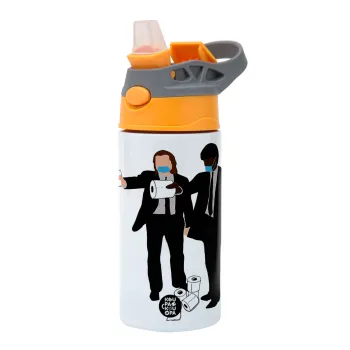 Pulp Fiction 3 meter away, Παιδικό παγούρι θερμό, ανοξείδωτο, με καλαμάκι ασφαλείας, Πορτοκαλί/Γκρι (360ml) BPA-FREE