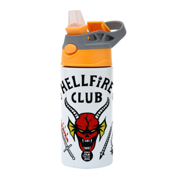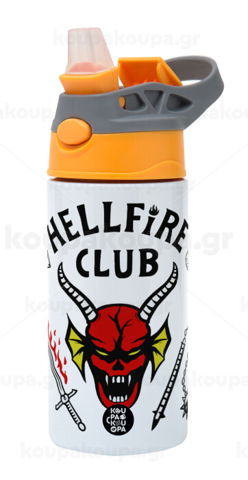 Hellfire CLub, Stranger Things, Παιδικό παγούρι θερμό, ανοξείδωτο, με καλαμάκι ασφαλείας, Πορτοκαλί/Γκρι (360ml) BPA-FREE