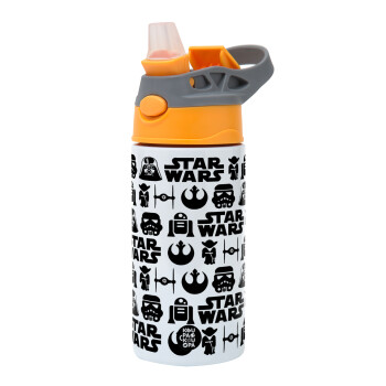 Star Wars Pattern, Παιδικό παγούρι θερμό, ανοξείδωτο, με καλαμάκι ασφαλείας, Πορτοκαλί/Γκρι (360ml) BPA-FREE