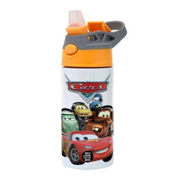 Αυτοκίνητα, Παιδικό παγούρι θερμό, ανοξείδωτο, με καλαμάκι ασφαλείας, Πορτοκαλί/Γκρι (360ml) BPA-FREE