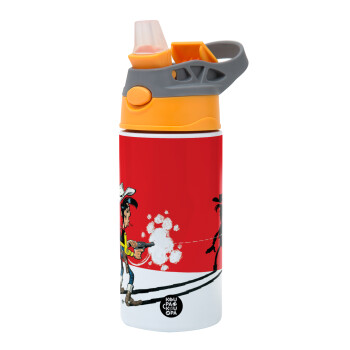 Λούκυ Λουκ σκιές, Παιδικό παγούρι θερμό, ανοξείδωτο, με καλαμάκι ασφαλείας, Πορτοκαλί/Γκρι (360ml) BPA-FREE