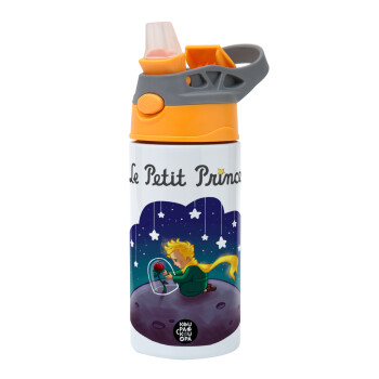 Ο μικρός πρίγκιπας, Παιδικό παγούρι θερμό, ανοξείδωτο, με καλαμάκι ασφαλείας, Πορτοκαλί/Γκρι (360ml) BPA-FREE