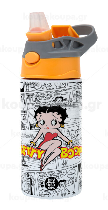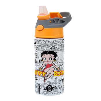 Betty Boop, Παιδικό παγούρι θερμό, ανοξείδωτο, με καλαμάκι ασφαλείας, Πορτοκαλί/Γκρι (360ml) BPA-FREE